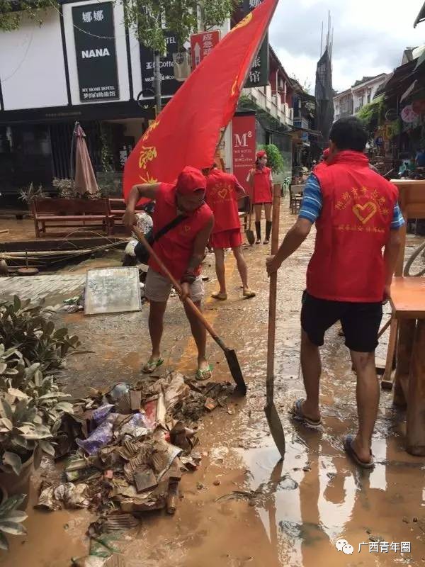 7月2日至3日,阳朔县发生严重洪涝灾害!灾情发生后,阳朔团县委迅速行动,吹响志愿者集结号,第一时间组织各界青年志愿服务队投入到抗洪救灾和灾后恢复生产工作。
