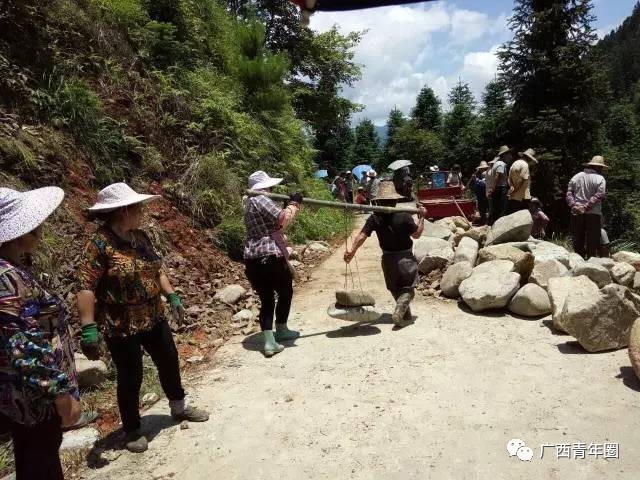 杆洞乡党员群众抢修公路。▲