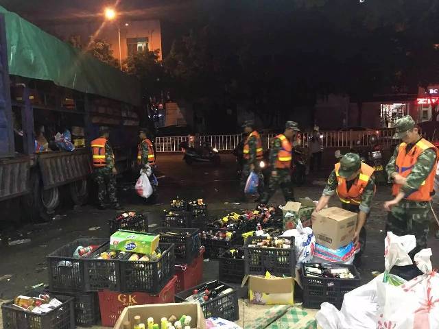 消防官兵到雒容镇雒容市场内一超市帮助疏散物资。▲