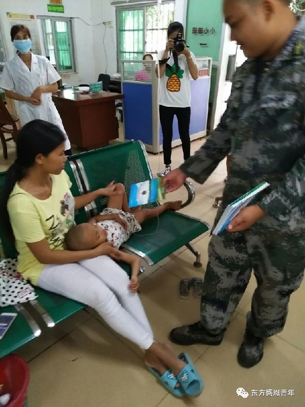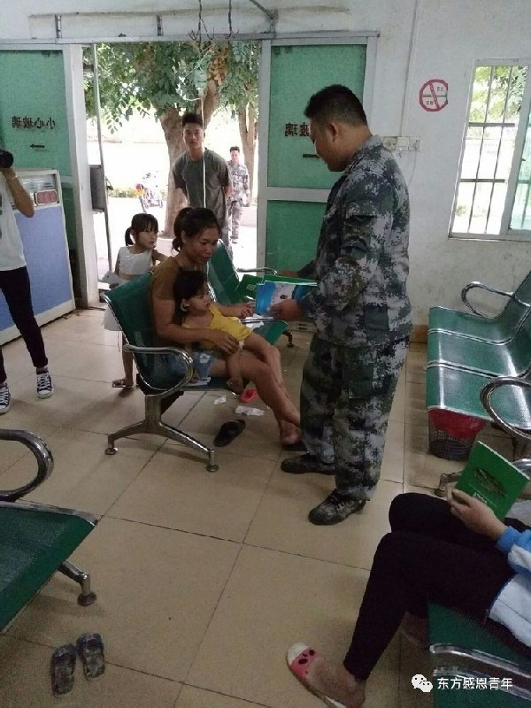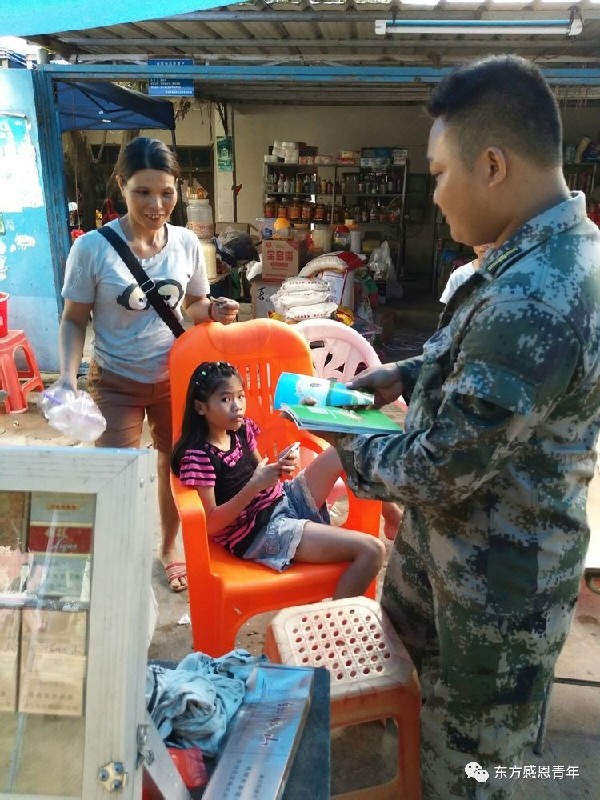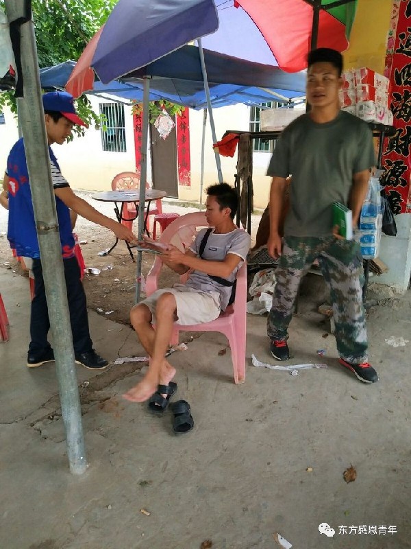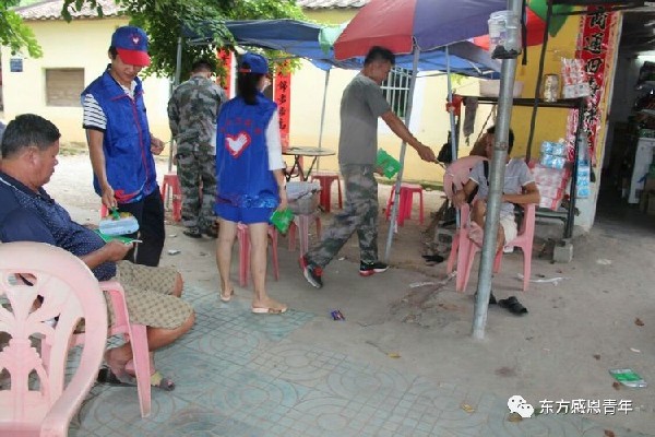 为群众发放宣传资料