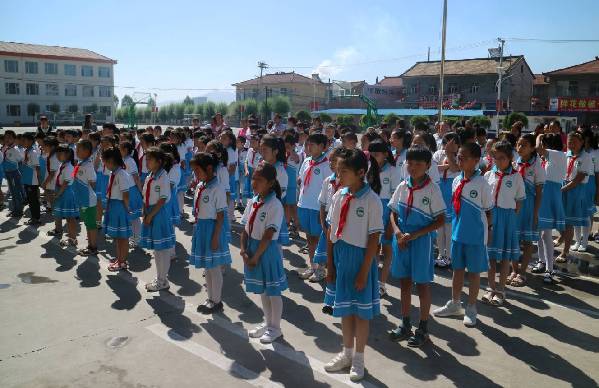 第二天,又紧张又期待的志愿者们正式见到了小同学们。他们着装整齐,腰杆笔挺挺的,烈日当空也无丝毫懈怠,这气势着实是“震”到了志愿者老师。