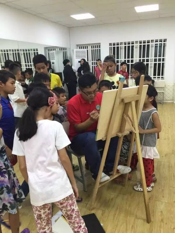 “中文和美术加起来,每天平均有四节课,”每天都和柬埔寨的孩子们泡在一起,曹勋昶逐渐发现有时候画笔比语言更能和孩子们沟通。