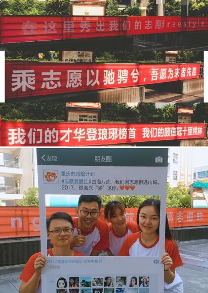 这里有好玩又有趣的标语横幅和西部计划志愿者拍照墙,这里有美丽帅气的西部计划志愿者“代言人”!