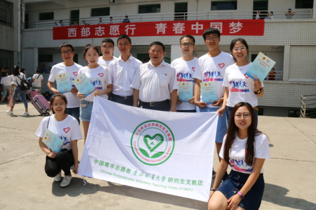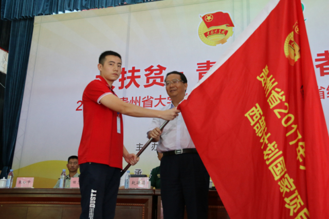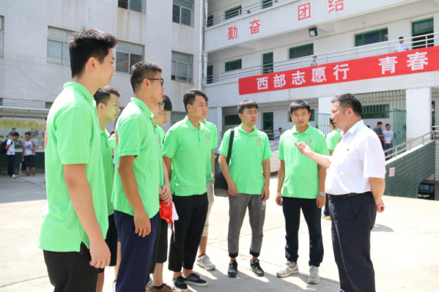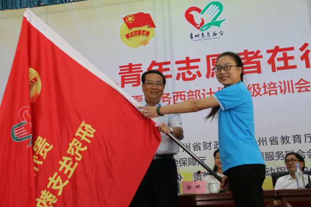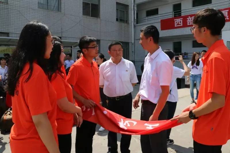 刘晓凯部长为即将出征的西部计划、研究生支教团志愿者授旗