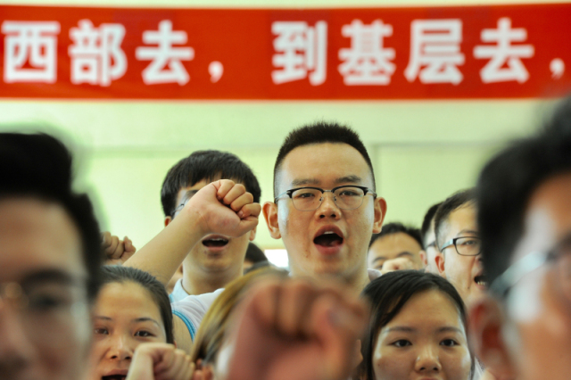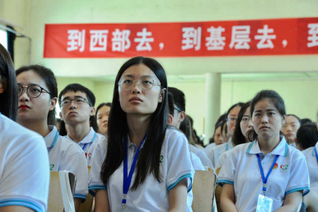 7月28日,2017年贵州省大学生志愿服务西部计划2896名志愿者出征,志愿者在贵阳参加完为期两天的培训后,将奔赴基层开展志愿服务。
