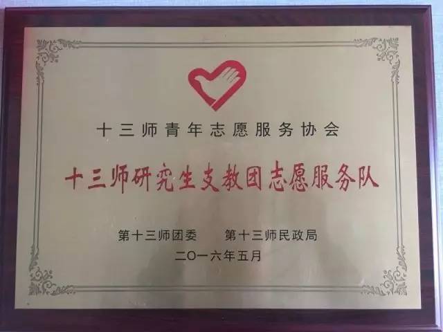 研支团被评为十三师研究生支教团支援服务小队