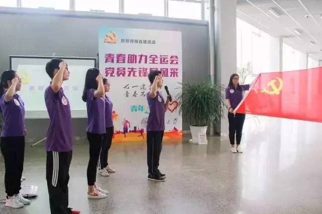 “我志愿加入中国共产党,拥护党的纲领,遵守党的章程,履行党员义务……为共产主义奋斗终身,随时准备为党和人民牺牲一切,永不叛党!” 全运会志愿者中的党员代表面对党旗重温入党誓词。