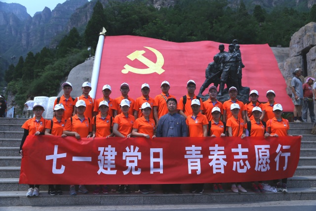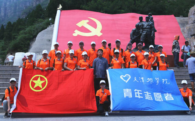2017年7月1日至2日,为纪念建党96周年,动员志愿者骨干更好地为全运会服务,天津农学院全运会临时党团支部一行20余人来到河北省保定市开展了为期两天的 “传承红色经典,行孝道树家风”主题党团日活动。校党委副书记王刚清,学工部部长、团委书记高艳参加了本次活动。临时党团支部乘车抵达河北省爱国主义教育基地——狼牙山。同学们攀登至狼牙山主峰莲花峰,参观了壮士纪念塔。纪念碑上一段段记载革命烈士事迹的文字和一幅幅振奋人心的画面,给青年志愿者们上了一堂生动鲜活的爱国主义教育课。