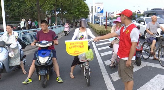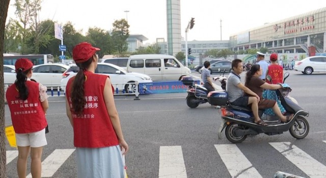 8月11号下午5点,火车站北广场新堂路与竹林路的交叉口,来自常州市排水管理处的5名交通志愿者已经就位,引导行人、提醒非机动车遵守规章,尽心尽责。每周工作日的早晚高峰时段,排水管理处40名志愿者都会在工作之余,来这里轮流执勤。