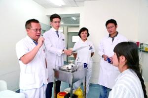 尹智(左二)跟随老师向患者询问病情。图片来源:北京晨报