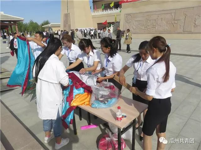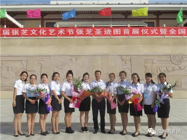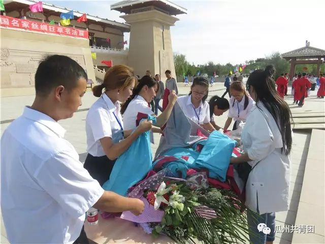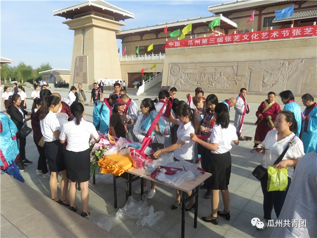 书法之乡翰墨香,金秋相约在瓜州。9月15日上午,中国瓜州第三届张芝文化艺术节张芝圣迹图首展仪式暨全国名家丝绸狂草书法展在瓜州县草圣故里文化产业园开幕。开幕式上,团县委组织10余名青年志愿者积极投入到本届张芝文化艺术节服务工作中来。