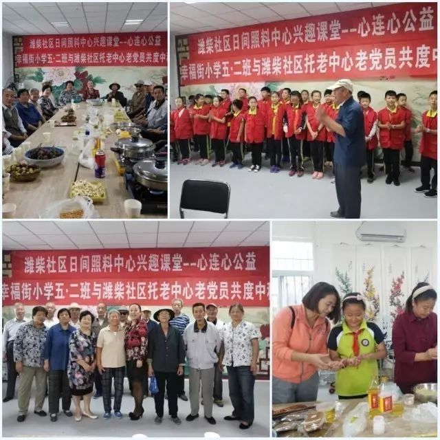 10月1日,幸福街小学五年级二班的心连心小义工与潍柴社区老党员共度国庆中秋佳节。潍柴社区刘书记亲手为老党员们做月饼,幸福街小学的心连心小义工们为老党员们表演精彩节目,孩子们用舞蹈抒发爱国情怀。