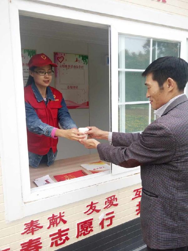 还有一天中午,烈日当头,一位小姑娘拎着大包小包的东西在服务站外经过,我看见她一副难受的样子,赶快连忙把她请进了服务站,进来才知道她有点中暑,马上为她倒了一杯水。小姑娘笑着说:“在这个炎热的夏天,服务站让我感觉到了清爽”。姑娘中暑缓解后,为我们写下志愿寄语表达了感谢之情,微笑着离开了。