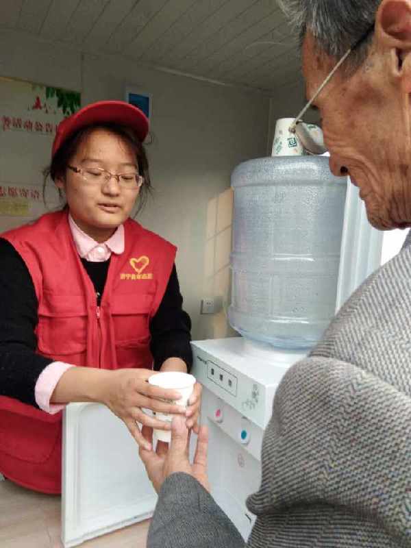 在我接待的人群当中有一位年过80的奶奶,在帮她在接水的过程中我们闲聊,她说了很多以前的事情,抗日战争、解放战争、新中国成立、改革开放。一代又一代的领导人带领着中国走向世界,带领人民奔小康,国家真是越来越好了。今天的社会尚未忘却他们这一代,让她很是欣慰,感谢党和政府,感谢我们志愿者的爱心奉献、热情服务。言辞很是激动,话语中满满的都是对我们服务的肯定。