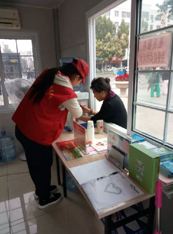 天越来越冷,气温也越来越低,时不时就寒气袭人落叶满地。纵然如此也挡不住志愿者为市民提供服务的热情,与喜迎十九大的热忱。