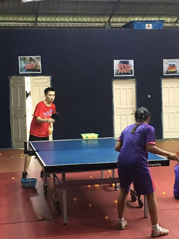 刚到缅甸见到他们的球馆时,心里满是惊讶,因为在目前的中国已经很少看到这样的情况:一个极其简陋的房子,四周都是用铁网围起来的空窗户,铁皮的房顶,1个教练员和11个运动员,教练常常很忙,更多的时候都是队员们自己训练,5张球台,每一张都高低不平,训练的多球也只有不到100个,11个队员啊,想练一下发球都困难,队员的胶皮也是男生用完女生用,女生用完男生用……