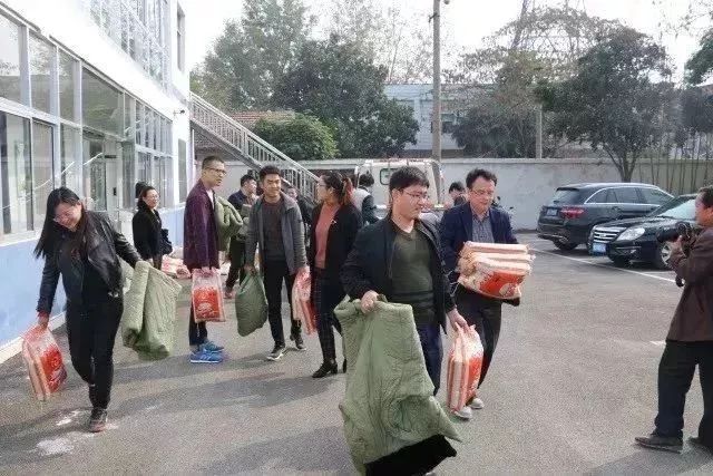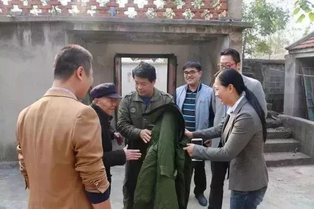 为老人发放军大衣等过冬物资。