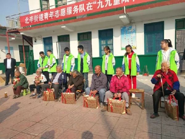 北辛街道和东沙河镇等镇街志愿者为老人送上爱心包裹。