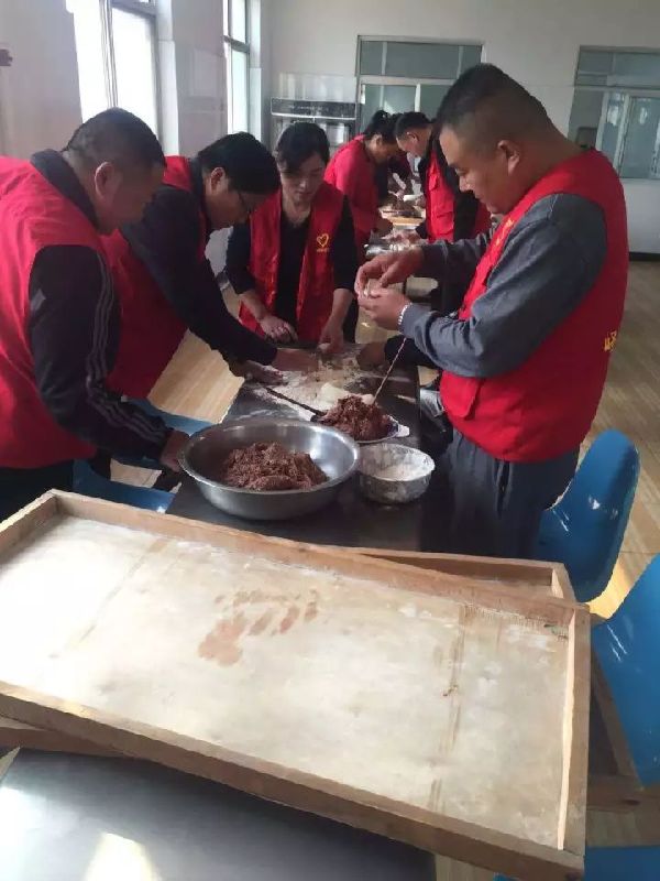 在陶庄镇敬老院为老人包水饺,煮羊肉汤。