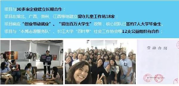 目前有IT智愿者、阳光家园、憨逗咖啡、七彩课堂等项目,并与30多家企业建立长期合作,在湖北、广西、贵州、江西等地建立留守儿童工作站18家。