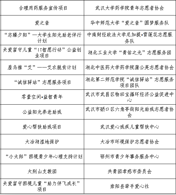 与“本禹志愿服务队”、长江大学“四叶草”社会工作协会等12支公益组织建立合作关系。