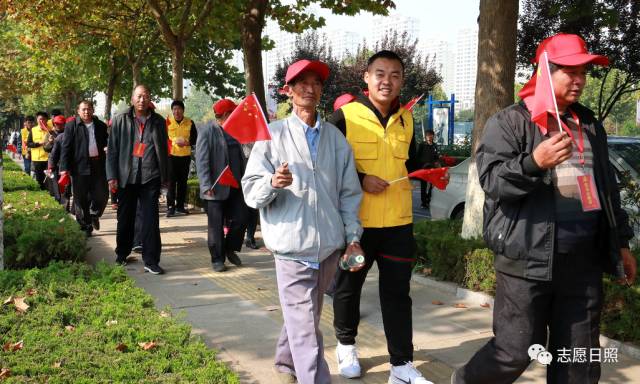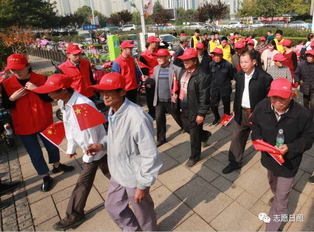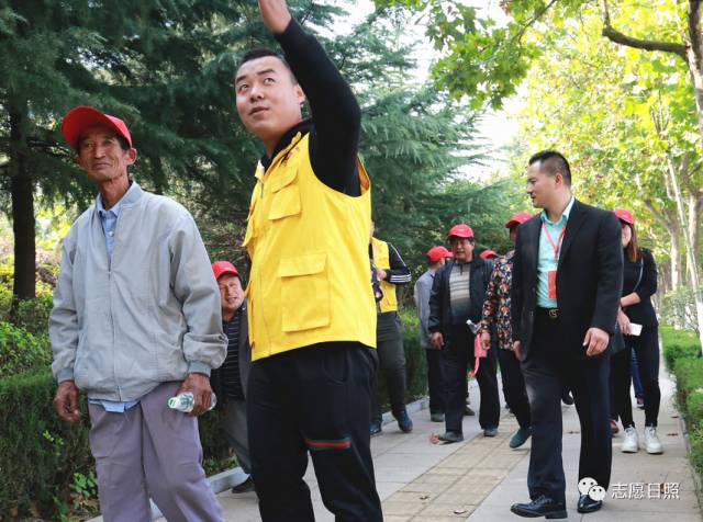 临近中午来到了第二站银河公园,日照保安志愿服务总队的志愿者们早已等候在这里,节日的银河公园游客络绎不绝,27名志愿者分成四组,在参观队伍前后左右为老人保驾护航。