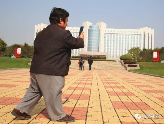 爱心行队伍里的彭均贤拿出手机拍摄,屏幕里呈现出并不清晰的市政府大楼,他说要拍下来,给村里人看看。