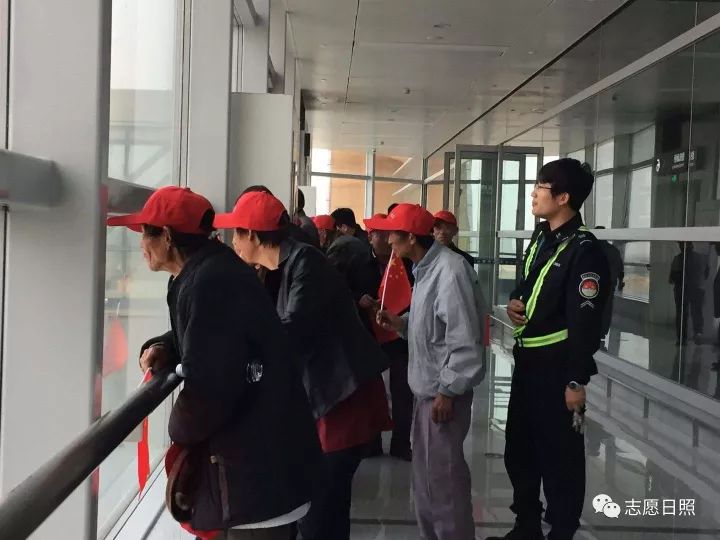 日照机场安检护卫部团支部的青年志愿者向老人们介绍了机场有关情况,耐心回答了老人们提出的问题。