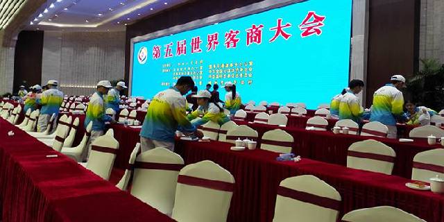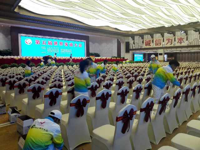 ▲图为志愿者服务第五届世界客商大会开幕大会