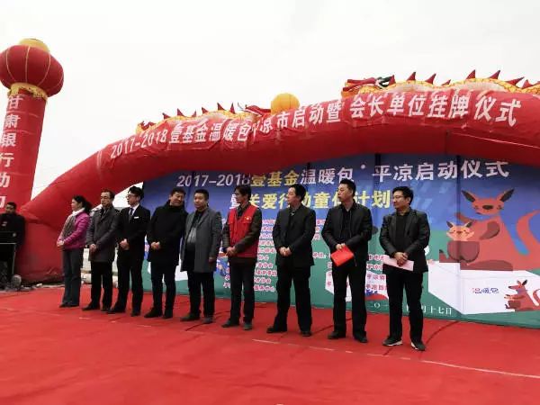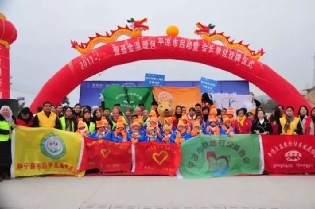 平凉团市委组织众益农村社区发展协会等9支志愿公益组织在此举行2017-2018平凉市关爱留守儿童“童伴计划”壹基金“冬季温暖包”发放仪式,今年该项目为全市29个乡镇135所学校的1256名儿童带来了“冬季温暖包”,每件计350多元,包含棉衣、帽子、围巾、手套、棉袜、雪地靴、冻疮膏、书包、美术套装、减防灾儿童读本和袋鼠公仔等物品,总价值近45万元。
