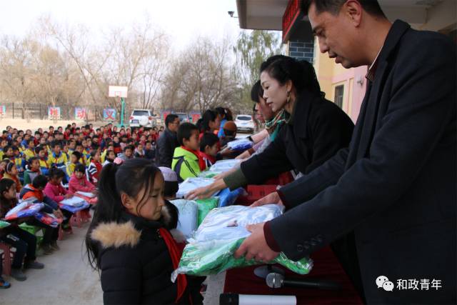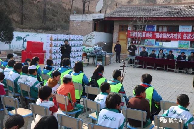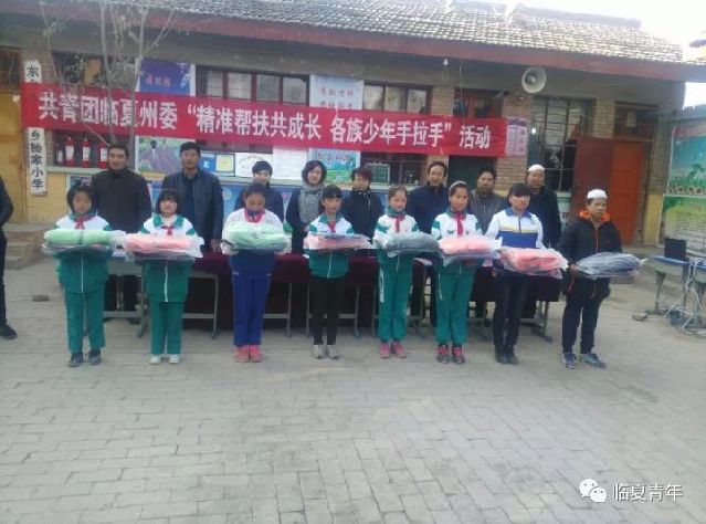 为认真学习宣传贯彻党的十九大精神和省十三次团代会精神,助力精准扶贫精准脱贫,更好地促进全州各民族少年儿童共同团结进步,帮助广大青少年健康成长。2017年12月1日,共青团临夏州委与海伦教育共同在东乡县大树乡杨家小学举行“精准帮扶共成长、各族少年手拉手”活动,向杨家小学96名学生捐赠了价值3万多元学习用品、棉服棉鞋和图书。