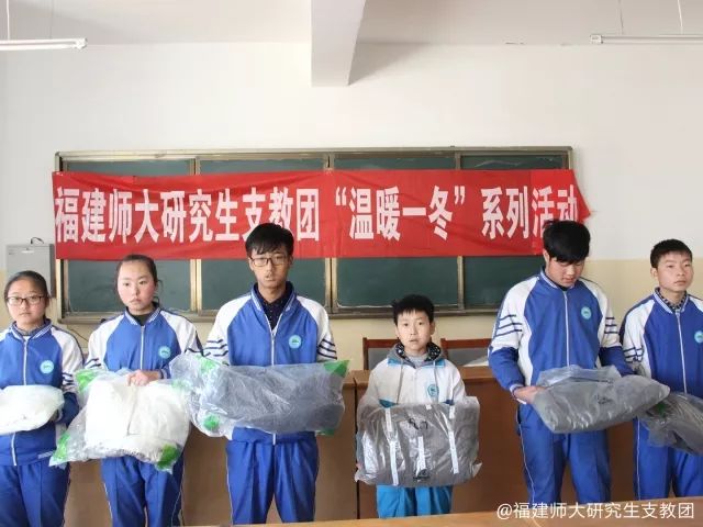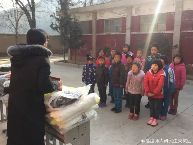 12月1日,福建师范大学研究生支教团漳县分队走进漳县新寺大柳小学、新寺中心小学、新寺中学和贵清山镇菓林小学开展“一对一”爱心助学金以及“温暖一冬”物资发放活动。来自四所学校的老师、优秀贫困学生、学生家长以及福建师范大学研究生支教团漳县分队队员共两百余人参加本次活动。