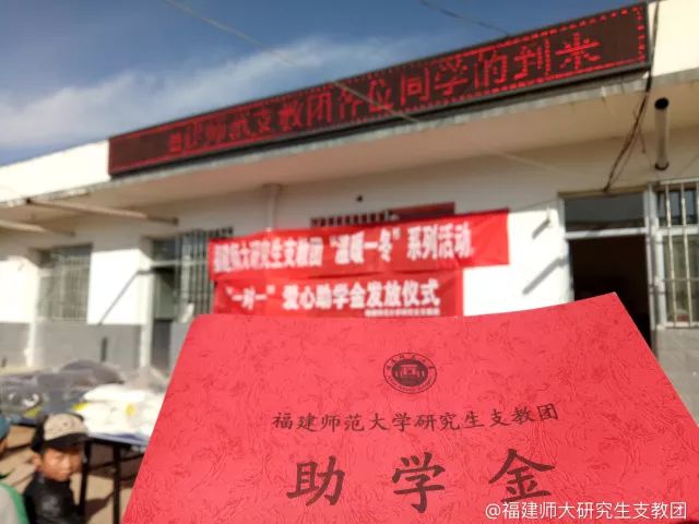 在本次活动中,福建师范大学研究生支教团在新寺大柳小学、新寺中心小学、新寺中学和贵清山镇菓林小学共为103名学生发放助学金25150元。