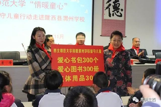 据悉,为确保共青团关爱留守儿童“童伴计划”落到实处,切实帮助和服务留守儿童健康快乐成长,西北师范大学团委主动衔接排摸陇西县300名留守儿童开展结对帮扶,并现场捐赠爱心书包300个,爱心图书300册,文体用品30套,共计8.6万元。