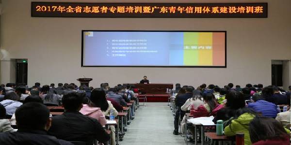 12月11日-13日,2017年全省志愿者专题培训暨广东青年信用体系建设培训班在广东青年职业学院(白云校区)顺利举办,全省21个地市分管志愿服务工作的团市委副书记、志愿者工作部门负责同志,相关省直机关、高等院校志愿服务工作负责同志,以及21个地市主要志愿服务团队负责同志等200多人参加了培训。