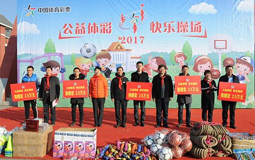 12月21日下午,宁夏体育彩票管理中心在贺兰县洪广镇欣荣小学举行宁夏2017年“公益体彩·快乐操场”捐赠仪式。自治区体育局副局长梁纪籽、宁夏体育彩票管理中心主任祁春霞、贺兰县教育体育局副局长韩玉峰出席活动。今年,“公益体彩乐善基金”出资37.5万元,宁夏体彩中心出资12.5万元,共计50万元,用于开展“公益体彩·快乐操场”活动,我区共有20所学校得到捐助,每所学校2.5万元用于体育器材购置,目前款项已全部到位。