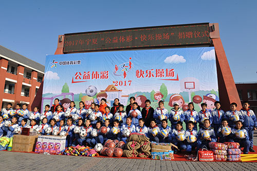 “公益体彩·快乐操场”活动是由国家体育总局体育彩票管理中心和中华全国体育基金会共同组织开展的公益活动,主要为体育设施匮乏的贫困学校送去亟需的体育器材及公益体育课,传播体育彩票“乐善人生”的文化精神,让孩子们享受运动带来的欢乐。宁夏已开展此项活动三次,共有140多所学校得到了价值200万元的体育器材捐赠。