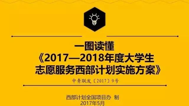 5月9日,共青团中央、教育部、财政部、人力资源和社会保障部共同印发《2017-2018年度大学生志愿服务西部计划实施方案》。