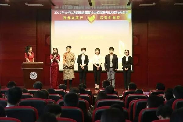 4月6日,2017年全国大学生志愿服务西部计划巡回宣讲首场报告会在清华大学举办。