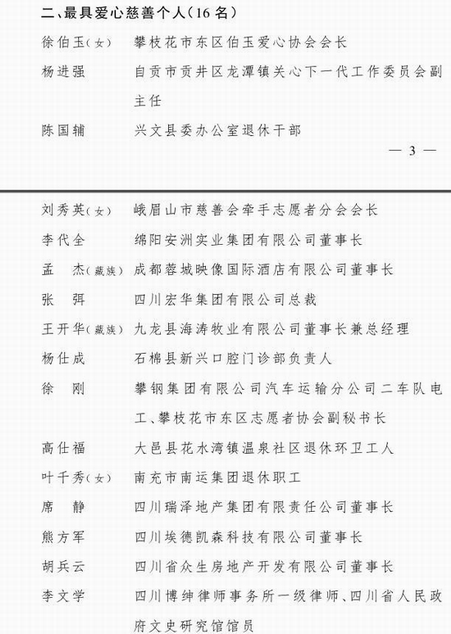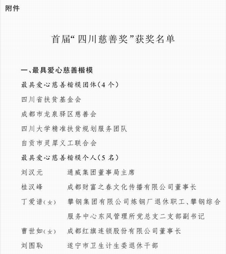 原标题:四川省人民政府表彰首届“四川慈善奖”获得者