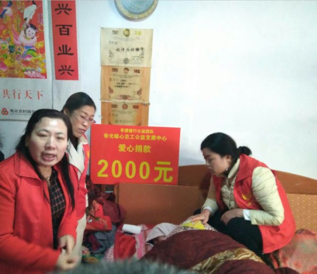 寿光暖心志工公益发展中心和孝德健行公益团队的志愿者们来到肿瘤患者郝某、孙某家中,分别为他们送去了2000元的爱心款,鼓励他们树立信心,坚强面对生活。