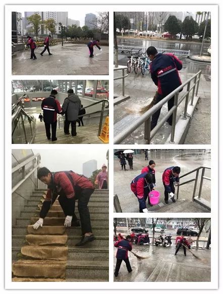 西湖区南站街道团委组织20余名青年志愿者在火车站周边开展除冰扫雪志愿服务活动。