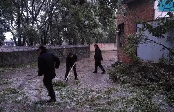 青山湖团区委组织青年志愿者和社区居民共29人,在上海路街道的新世纪社区和南社区清运弯折树枝,共清理倒的大树两棵,倒下的树枝100余处。
