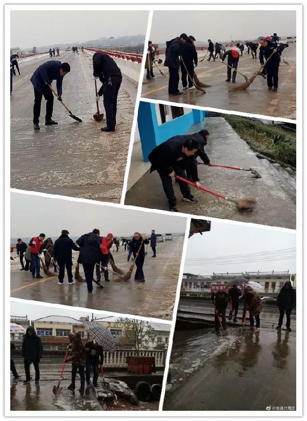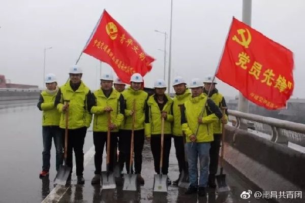 中建交通团委组织昌南大道项目青年志愿者30余人,带上铁锹扫帚等铲冰除雪工具,齐心协力在青山湖区英雄大桥共清理道2000余米,耗时8小时。南外环项目也积极投身活动中,项目动员20余人奔赴南昌外环高速清理道路500余米,用最快的速度抢通了冰冻路段。