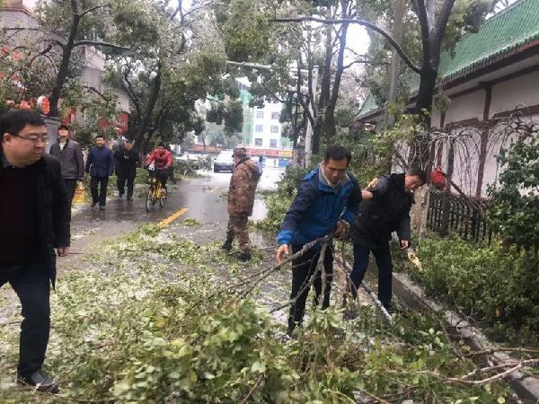 市公安局组织青年民警、辅警和保安加强巡查、清理树技,保障交通畅通。