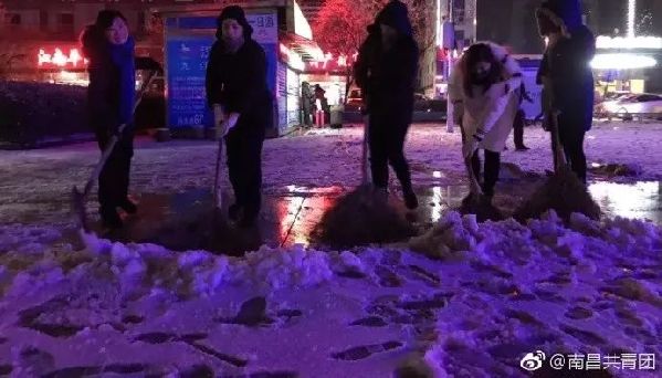 南昌县南新乡团委组织20余名青年志愿者开展扫雪除冰活动。