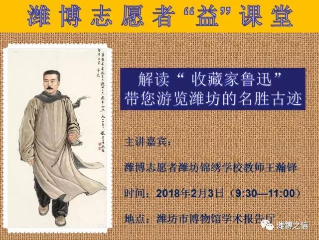 2月3日上午,“潍博志愿者‘益’课堂——解读收藏家鲁迅”活动在潍坊市博物馆二楼展厅与学术报告厅举行。潍坊市市的30多位中小学生、家长以及潍博志愿者共40余人参加了此次文化体验活动。