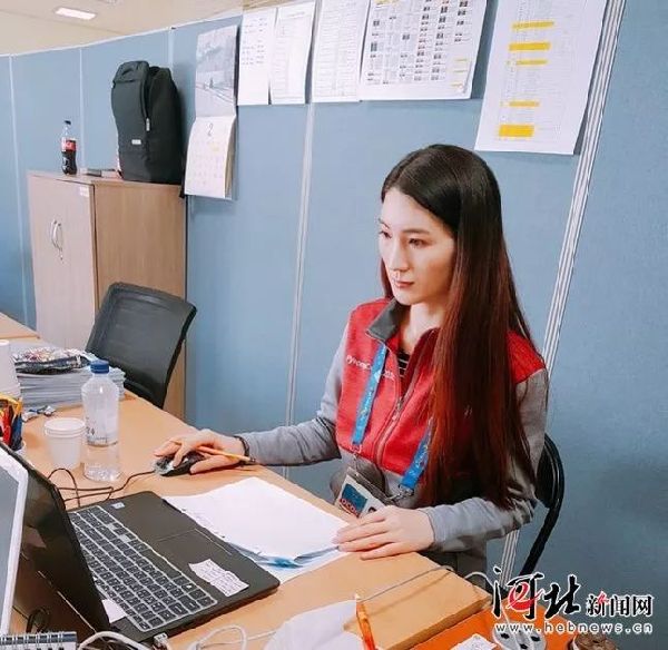 来自河北邢台的平昌冬奥志愿者施旭云在工作中