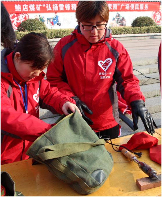 早7点多钟,志愿者们相约来到鲍店矿休闲广场。遮阳伞、焊补工具、血压计、理发工具等等都已准备妥当。不一会儿,各个服务区域的桌前,已经挤满了人。下面就请您跟随小编的镜头一起感受下鲍店矿丰富多彩的“第55个学雷锋日暖心志愿服务”吧。