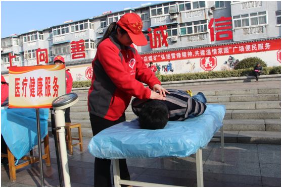 “志愿者我颈椎不舒服……”没事,鲍店矿有中医专业的志愿者。中医推拿,是以中医的脏腑、经络学为理论基础,用手法作用于人体体表的特定部位以调节机体生理、病理状况,达到理疗目的的方法。